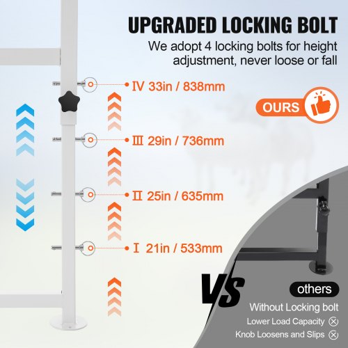 VEVOR Soporte para cabras y ovejas, soporte para ganado de 51 x 23 pulgadas, soporte de metal para ordeño y esquila de ganado, altura ajustable de 21 a 33 pulgadas, con tocado y bucle para la nariz, peso de carga de 500 libras, blanco
