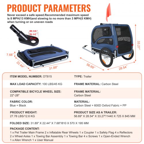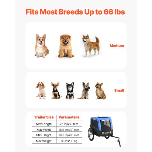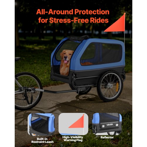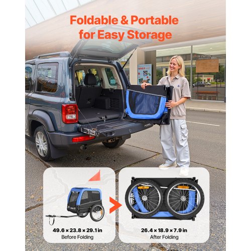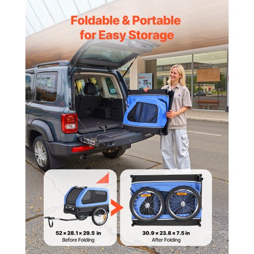 VEVOR Remolque de Bicicleta para Perros, Carga de 40 kg, Carrito Portabicicletas Plegable 2 en 1 para Perros con Rueda de Liberación Rápida, Enganche Universal y Correa Interior, 1380 x 755 x 800 mm