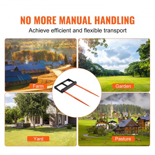 VEVOR Recolector de Pacas de Heno Capacidad de Carga 1360 kg Horquilla para Pacas 2 dientes Horquillas con Púas de 125 cm Accesorio de Cucharón de Alta Durabilidad para Tractores, Agricultores, Campos