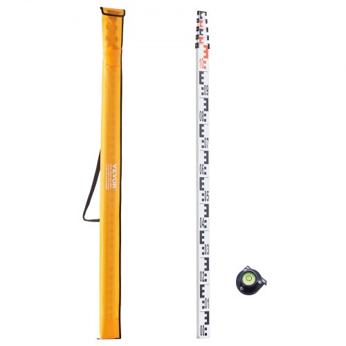 Varilla de medición telescópica de aluminio VEVOR de 5 m con escala de doble cara en cm/mm, varilla de nivelación, varilla de medición de aleación de aluminio con nivel de burbuja y bolsa de transporte para medir casas, paredes y pisos