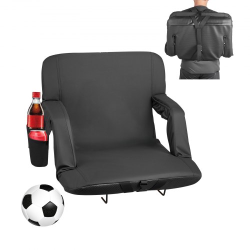 VEVOR Silla de Grada Plegable con Respaldo, Acolchada y con Correa para el Hombro, para Estadio, Eventos Deportivos, Conciertos o Eventos al Aire Libre, Fabricada en Licra, Color Negro, 1 ud