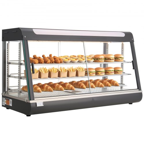 Calentador de alimentos comercial de 3 niveles VEVOR, calentador de alimentos de 800 W con luz para mejorar la exhibición de los alimentos, control de temperatura de 30 ℃ ~ 85 ℃, gran capacidad de 90 L para hamburguesas, pizzas, pan, pollo frito