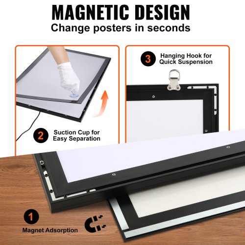 VEVOR Marco de Póster LED en Negro, Marco de Fotos de Aluminio 610 x 406 mm Pantalla Publicitaria Señal de Pavimento, con Caja de Luz LED Retroiluminada 20W 3kg Individual