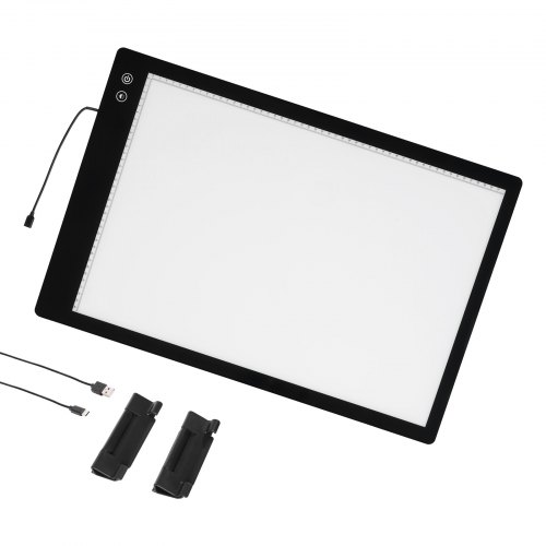 VEVOR Tablero de Luz Panel de Luz LED A3 con Brillo Regulable de 3 Niveles, Mesa de Luz Alimentada por USB para Trazado, Caja de Luz para Pintura con Diamantes, Animación, Bocetos, Estarcido, Negro
