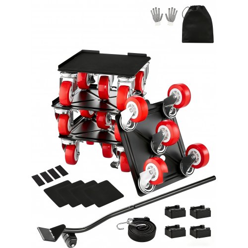 VEVOR 4 PCS Plataforma Rodante para Muebles Carga de 200 kg, Transportador de Muebles con 3 Ruedas Giratorias Triangulares y Panel de Acero al Carbono, Herramientas Deslizantes para Mover Muebles