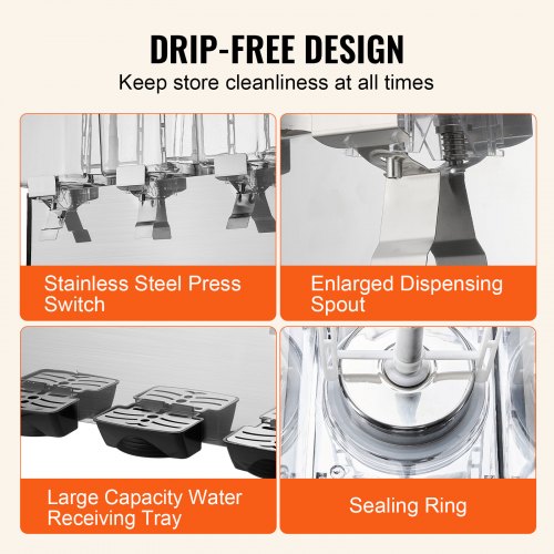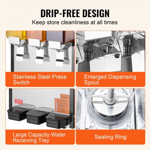 VEVOR Máquina de Dispensador de Bebida 36 L, Máquina de Bebidas Frío con Tanques 12 L * 3, Máquina de Dispensador de Jugo 270 W, Máquina de Bebidas Frías de Acero Inoxidable Temperatura 5-12℃
