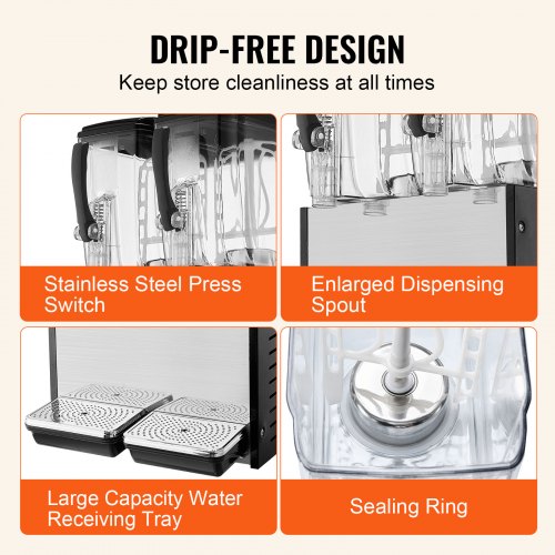 VEVOR Dispensador de Bebidas Comercial 18L x 2 Tanques Máquina de Bebidas Frías Heladas de Acero Inoxidable 370W Temperatura de Enfriamiento 7~12°C para Restaurantes, Bares, Fiestas, 46,5x45,5x67cm