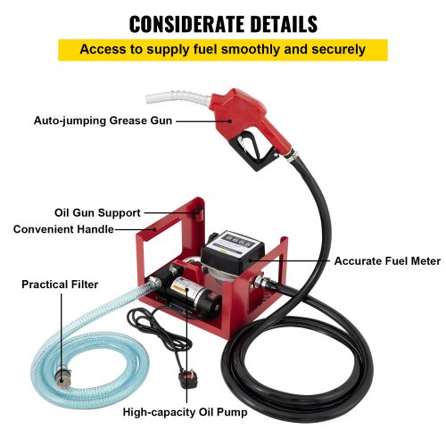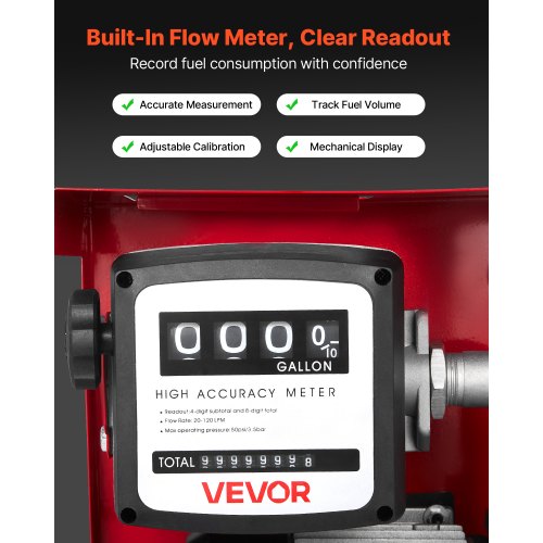 VEVOR Bomba de Transferencia de Combustible, 60 L/min, con Medidor, Boquilla de Combustible Automática y 2 Mangueras, Elevación de 13,7 m, para Diésel, Queroseno y Biodiésel para Vehículos