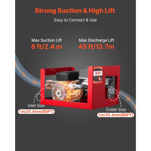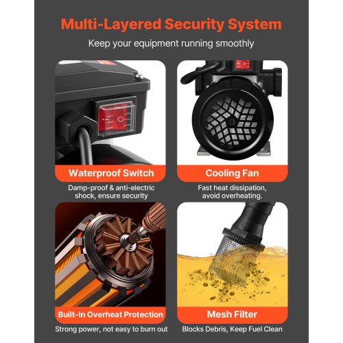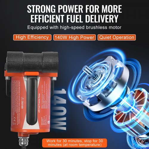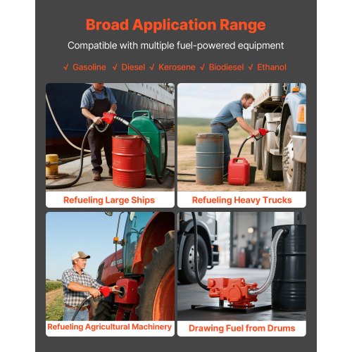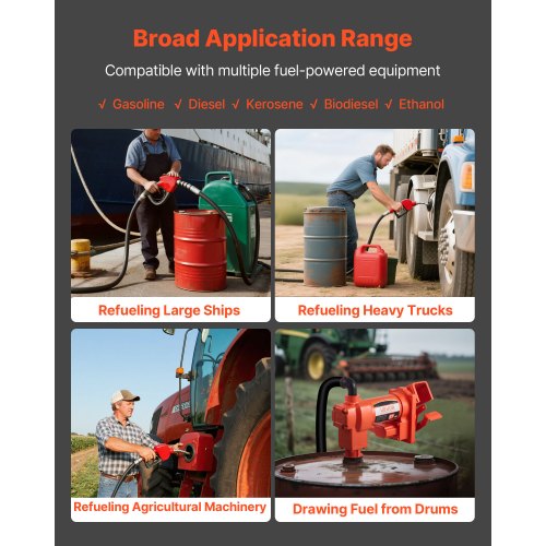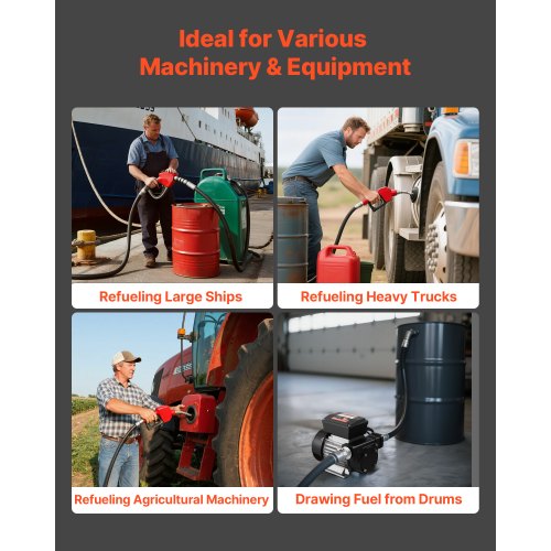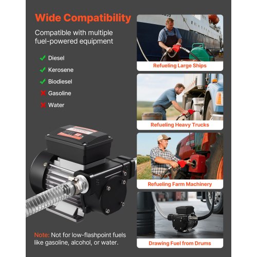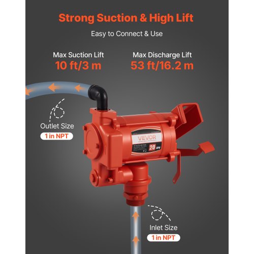 VEVOR Bomba de Transferencia de Combustible, 57 L/min, Elevación Máx. de Succión de 2,4 m, Elevación Máx. de 11,28 m, Protección Contra Sobrecalentamiento, para Gasolina, Diésel, Queroseno, Etanol