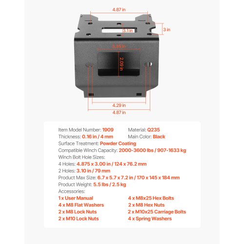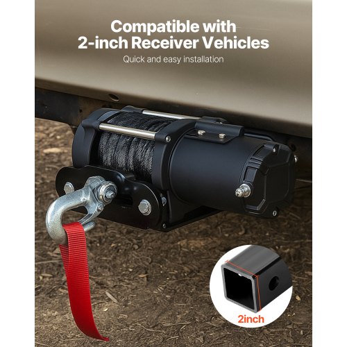 VEVOR Soporte de Cabrestante, Soporte de Enganche de Remolque con Receptor de 50,8 mm, Orificios para Pernos de 2/4, Capacidad de 1633 kg para Vehículos Todoterreno, UTV y Camionetas, Negro
