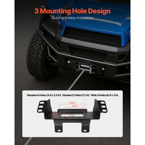 VEVOR Soporte de Cabrestante, Soporte de Enganche de Remolque para Modelos Selectos de Polaris Ranger (2010-2021), Diseño de 3 Orificios Capacidad de 907-1633 kg para Asistencia en Carretera