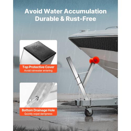 VEVOR Soporte para Cabrestante de Remolque de Barco, Compatible con Postes de Cabrestante de 50,8-76,2 mm, con Ruedas de TPU y Pernos en U para Motos Acuáticas, Veleros, Barcos de Pesca, Plata