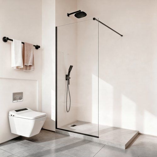 VEVOR Mampara de Ducha Fija 86,4 x 187 cm, Elegancia Contemporánea, con Marco, Diseño Impermeable para Un Baño Seco, Vidrio Templado Transparente de 8 mm de Grosor, con Junta Inferior y Herrajes