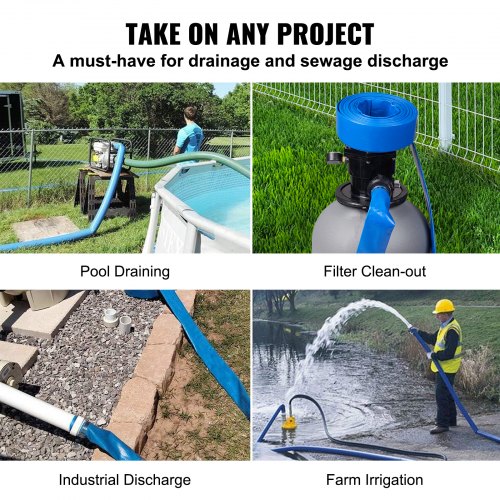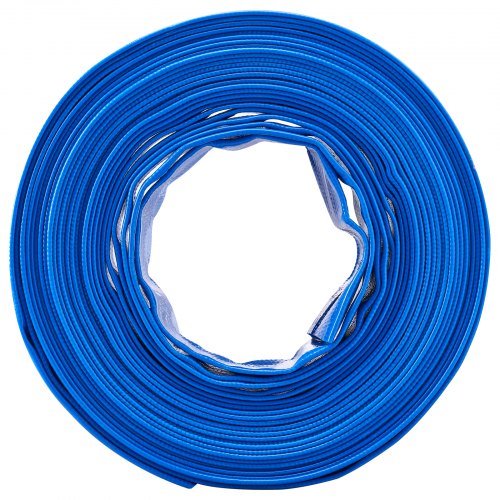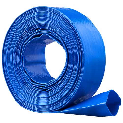 VEVOR Manguera de Descarga de 51 mm x 32 m Manguera Plana de Tela de PVC Manguera de Drenaje Resistente con Abrazaderas Resistente a la Intemperie para Piscina y Transferencia de Agua, Azul