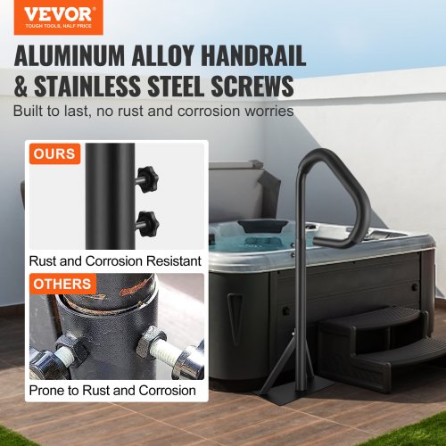 VEVOR Pasamanos Lateral para Spa 54,2x37x144,7 cm Pasamanos de Jacuzzi Giratorio de 360° Altura Ajustable 89-144,7 cm Carga 272 kg Base de Montaje Deslizante de Aluminio Antioxidante para Bañera