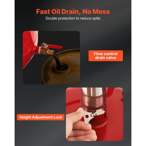 VEVOR Tanque de Drenaje de Aceite Usado, Drenaje de Aceite Manual Portátil 30 L con Embudo Ajustable, Ruedas, Caja de Herramientas, Drenador de Combustible para Taller de Reparación de Coches, Rojo