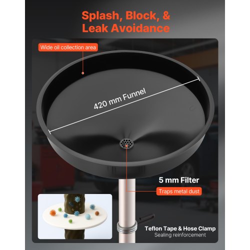 VEVOR Tanque de Drenaje de Aceite Usado 80 L Contenedor de Drenaje de Aceite portátil Drenaje Suave de Transferencia de Combustible Altura de Embudo Ajustable con Rueda para fácil extracción de Aceite