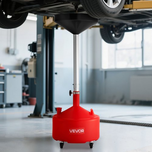 VEVOR Tanque de Drenaje de Aceite Usado, Drenaje de Aceite Portátil de Plástico de 68 L con Embudo Ajustable y Ruedas, Drenador de Combustible para Taller de Reparación de Coches, Industria, Rojo
