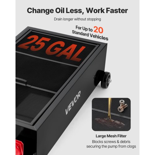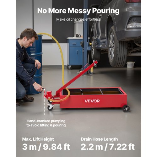 VEVOR Bandeja de drenaje de aceite tanque de drenaje de aceite 56,85 L bandeja de drenaje de aceite perfil bajo 5 L mano plegable con bomba manguera ruedas giratorias para automóvil, SUV, camiones