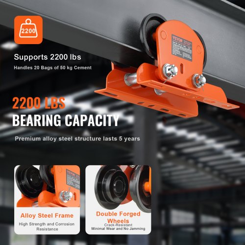 VEVOR Carro Manual con Ruedas Dobles, Carga de 1 T, Ajustable para Ancho de Brida de Viga en I de 63,5-177,8 mm, Polipasto de Garaje de Acero de Aleación Resistente para Vigas en I Rrectas y Curvas