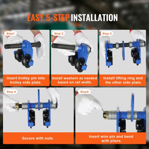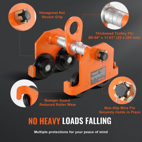 VEVOR Carro Manual con Ruedas Dobles, Carga de 0,5 T, Ajustable para Ancho de Brida de Viga en I de 63,5-139,7 mm, Polipasto de Garaje de Acero de Aleación Resistente para Vigas en I Rrectas y Curvas