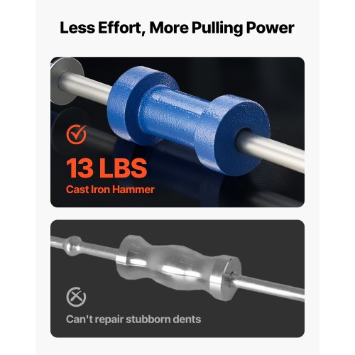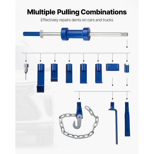 VEVOR Kit Extractor de Abolladuras 13 en 1, a Reparación de Carrocerías de Autos y Camiones, con Estuche de Transporte, Varilla de Extensión y Mango Antideslizante, para Diferentes Tipos Daños