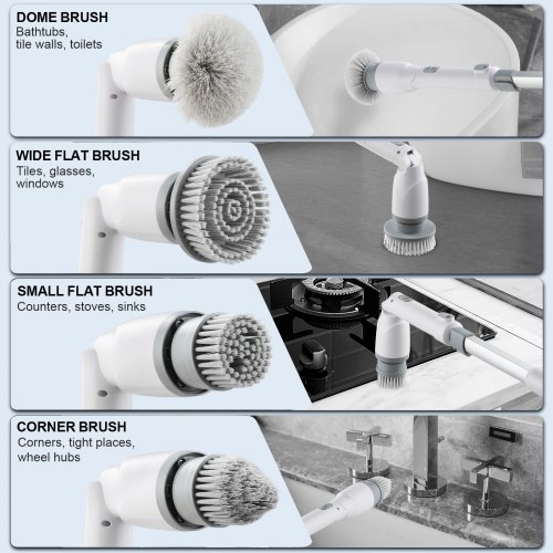 VEVOR Cepillo de Limpieza Eléctrico Recargable sin Cable Fregadora Giratoria Eléctrica con 4 Cabezales Recambiables Velocidad de 280/380 rpm Longitud y Ángulo Ajustables para Bañeras Baños Cocinas