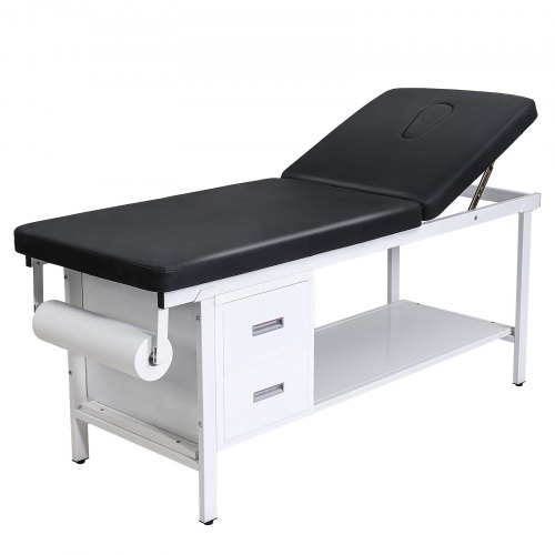 VEVOR Mesa de Exploración Médica, Respaldo Ajustable, con 2 Cajones, Estante de Almacenamiento y Dispensador de Rollos de Papel para Hospitales y Centros de Rehabilitación, 1855 x 705 x 815 mm