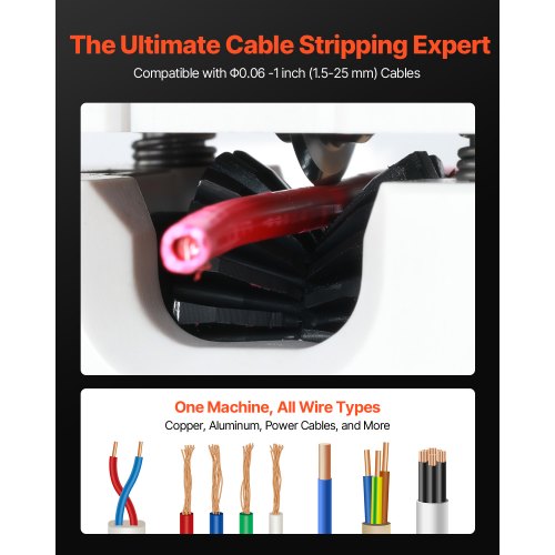 VEVOR Peladora de Cables Eléctrica, Motorizada y Automática con Cuchillas, Rodillos en Forma de V y Ventilador Diámetro de Cable Pelado Aplicable de 1,5-40 mm para Reciclaje de Chatarra de Cobre
