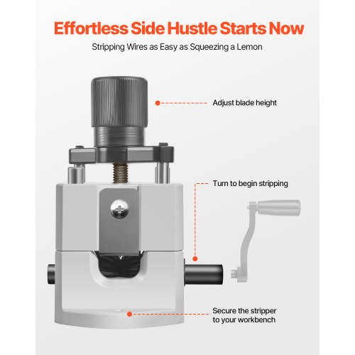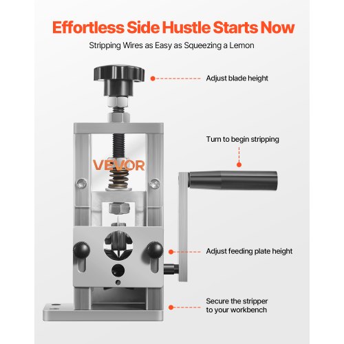 VEVOR Peladora de Cables Manual con Marco de Aleación de Aluminio 1,5-25 mm Pelacables con Manivela o Taladro, Cuchillas Templadas de 64 Mn, Rodillos de Acero para Reciclaje de Chatarra de Cobre