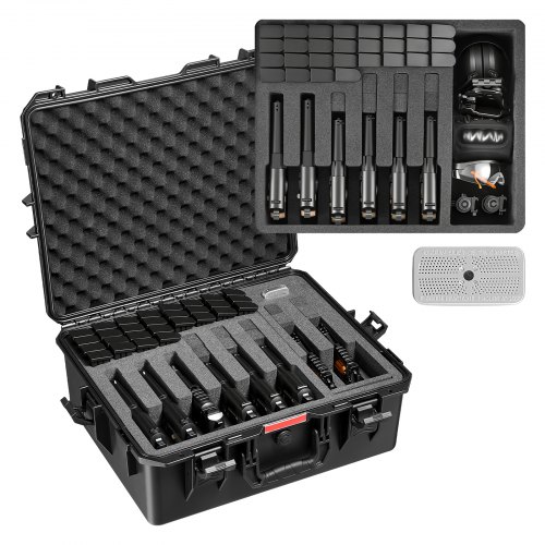VEVOR Estuche Rígido para Pistola con Revestimiento de Espuma XPE, Funda para 8 Pistolas, Resistente al Agua y Polvo con Interior Personalizable y Asa 556 x 455 x 225 mm, Negro, Cumple con la TSA