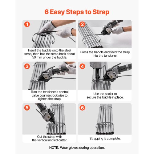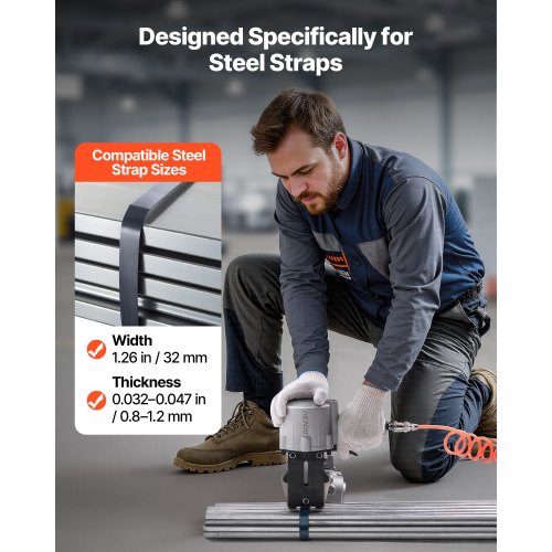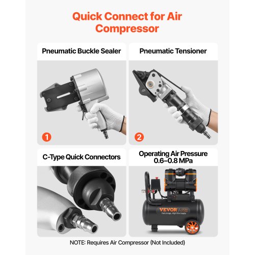 VEVOR Flejadora Neumática de Acero, Fuerza de Tensión de 8500 N, Tensor y Cortador de Flejado para Correa Metálica de 19 mm de Ancho, para Palés, Flejado a Granel en Fábricas, Almacenes y Logística