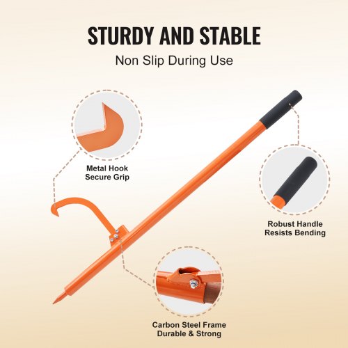 VEVOR Timberjack Mango de 1219 mm de Acero Resistente Elevador de Troncos con Gancho de Inclinación Ajustable Gato para Troncos de Diámetro Máximo 63,5cm Gato para Cortar, Rodar y Levantar Troncos