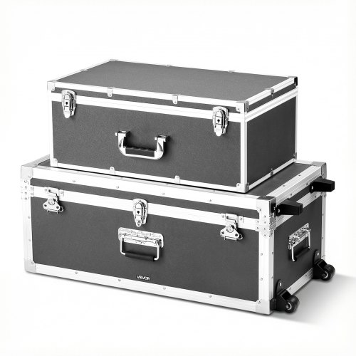 VEVOR Cajas de Transporte y Almacenamiento, Juego de 2 Piezas, Grande 763 x 392 x 312 mm, Pequeña 600 x 350 x 240 mm, Caja de Madera con Cerradura Asas de Metal Ruedas, para Viajes Equipo, Color Gris
