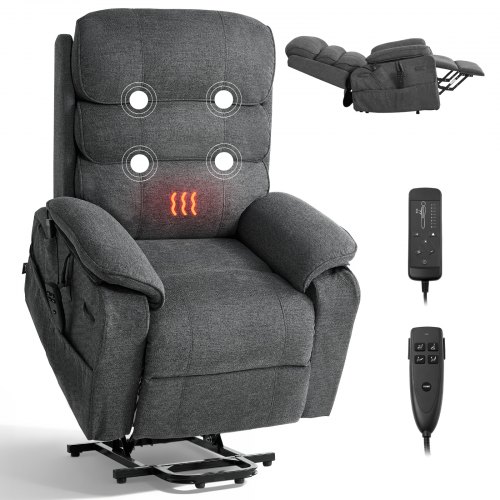 VEVOR Sillón Relax Reclinable Eléctrico, Sillón Reclinable Levantapersonas, con Reposapiés Calefacción Masaje Mando a Distancia Bolsillos Laterales, Tela Chenilla, para Salón Dormitorio, Gris Oscuro