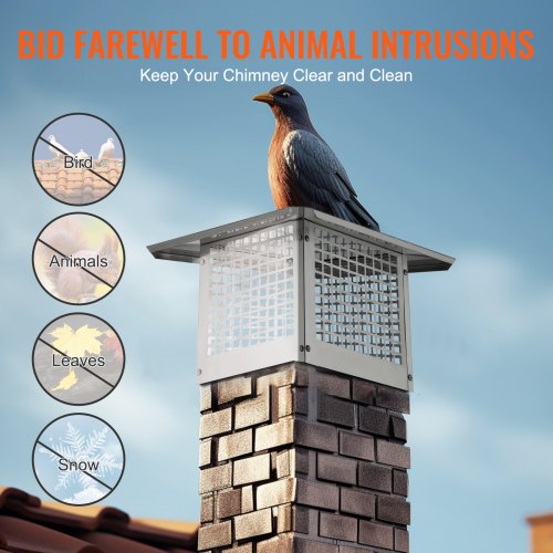 VEVOR Tapa de Chimenea 432x432 mm Sombrero de Chimenea Base Cuadrada Tapa de Cubierta de Acero Inoxidable 304 Protector contra Pájaros Viento y Lluvia con Accesorios para Diferentes Tipos de Chimeneas