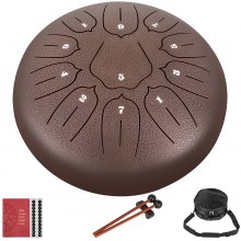 VEVOR Hand pan de Lengüeta de Acero 13 Nota 30cm, Tambor de Lengua de Calidad con Decoración de Cuerda y Mazos, Tambor de Lengüeta Color de Pistola, Bolsa Libro de Música Color de Pistola
