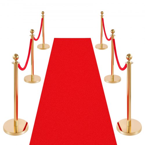 VEVOR Poste Guía de Barrera 8 Piezas con 6 Cuerdas de Terciopelo y Alfombra Roja, Barrera de Marcado de Control con Base, para Cola de Separación de Demarcación en Teatro Hotel Exposición, Dorado