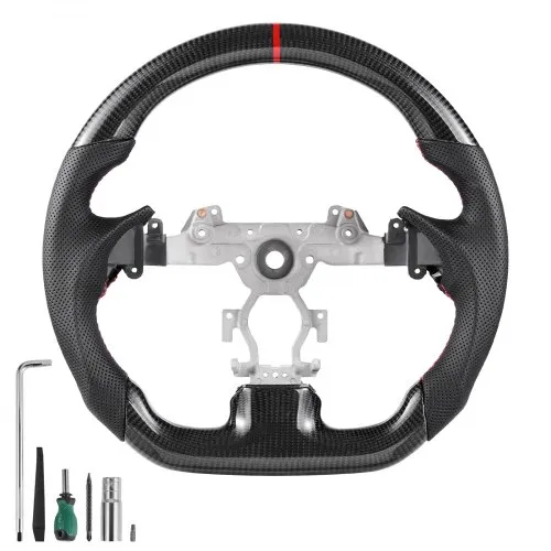 VEVOR Volante para Infiniti G37 2007–2013, Volante en Forma de D de Fibra de Carbono, Achatado en la Parte Inferior, Empuñadura de Cuero Antideslizante con Costuras de Precisión, Color Negro