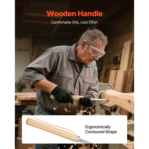 VEVOR Juego de Herramientas de Torneado para Madera (8 Piezas), Cinceles con Hoja de Acero al Carbono, 2 Puntas Sesgada, 1 Punta de Lanza, 1 Tronzado, 1 Punta Redonda, 3 Gubias, 1 Bolsa Oxford