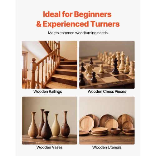 VEVOR 4 PCS Juego de Herramientas de Torneado para Madera Herramienta Hueca para Desbaste, Acabado y Detalle con Mango de Madera, Insertos de Carburo Redondos y Cuadrados de Diamante, Caja de Madera