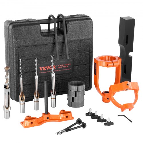 VEVOR Accesorio de embutir para prensa de taladro, 4 brocas, kit de cincel de orificio cuadrado, juego de localizador de brocas de banco, herramientas de embutir y espiga con 5 bujes, para carpintería