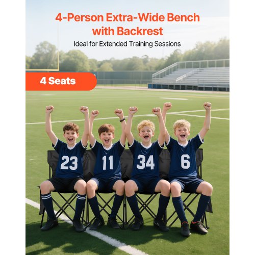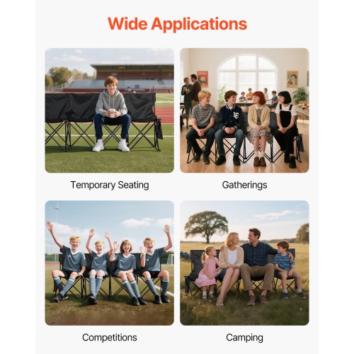 VEVOR Silla Plegable de 4 Plazas, Asiento de Banco Plegable con Bolsillos Laterales y Bolsa de Transporte, Banco Lateral para Gradas con Respaldo para Camping, Actividades al Aire Libre, Negro