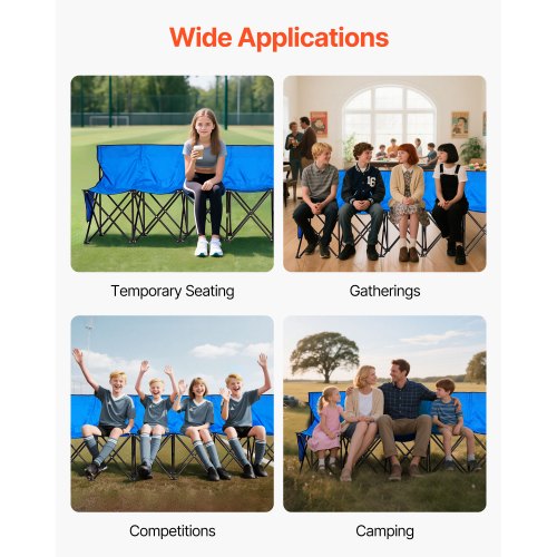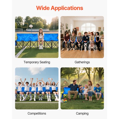 VEVOR Silla Plegable de 6 Plazas, Asiento de Banco Plegable con Bolsillos Laterales y Bolsa de Transporte, Banco Lateral para Gradas con Respaldo para Camping, Actividades al Aire Libre, Azul