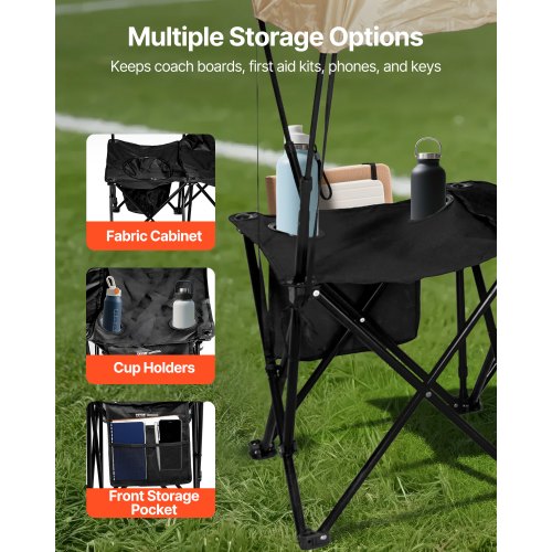 VEVOR Silla Plegable de 6 Plazas, Asiento de Banco Plegable con Bolsillos Laterales, Bolsa de Transporte, Parasol, Banco para Gradas con Respaldo para Camping, Actividades al Aire Libre, Negro