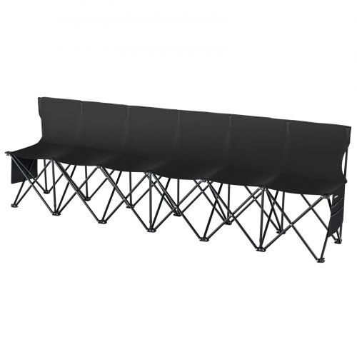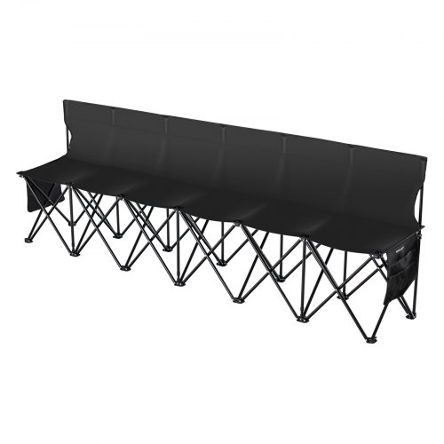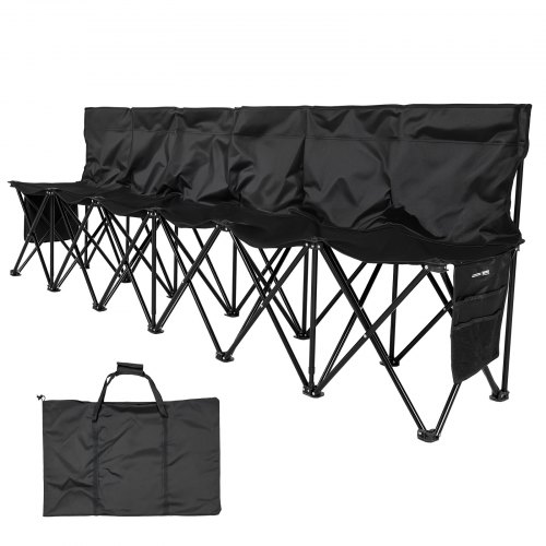 Banco plegable portátil VEVOR, banco lateral plegable de 6 asientos, banco para acampar al aire libre con bolsa de transporte y respaldo, banco lateral para deportes de equipo para fútbol, pesca, asiento instantáneo sin ensamblaje, negro