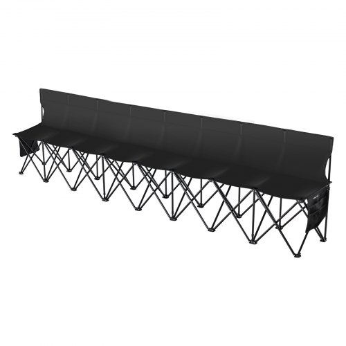 Banco plegable portátil VEVOR, banco lateral plegable de 8 asientos, banco para acampar al aire libre con bolsa de transporte y respaldo, banco lateral para deportes de equipo para fútbol, pesca, asiento instantáneo sin ensamblaje, negro