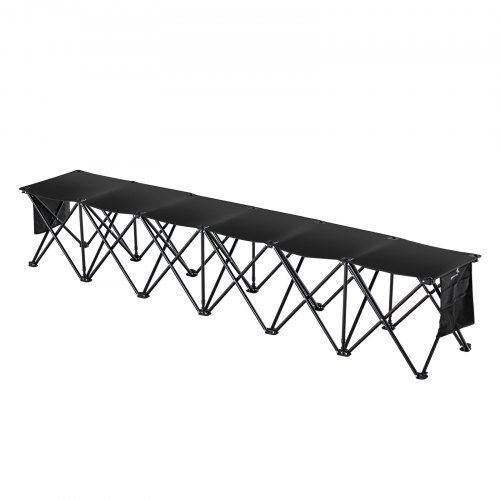 Banco plegable portátil VEVOR, banco lateral plegable de 6 asientos, sillas de banco para acampar al aire libre con bolsa de transporte, banco lateral para deportes de equipo para fútbol, camping, pesca, asiento instantáneo sin ensamblaje, negro
