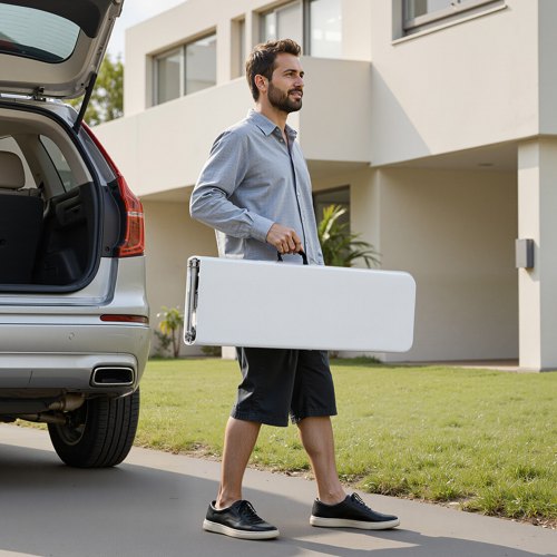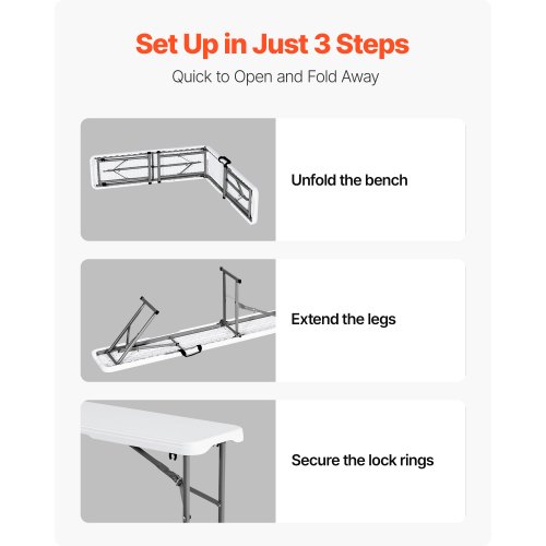Banco plegable de plástico VEVOR, banco portátil de 183 mm, banco de exterior impermeable de HDPE, asiento de comedor para picnic y camping con asa de transporte, para actividades de jardín, banco plegable de plástico blanco