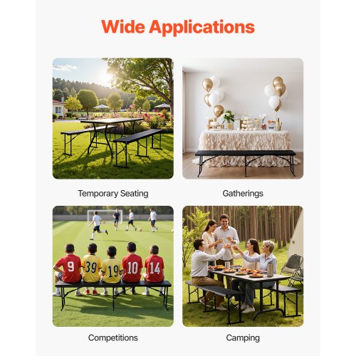 VEVOR Banco Plegable Portátil 2 Piezas Banco de Camping 182,5 x 28 x 43 cm Fabricado en HDPE con Patas de Metal con 2 Bolsas de Transporte, Asiento Plegable Catering para Camping, Pícnics, Negro